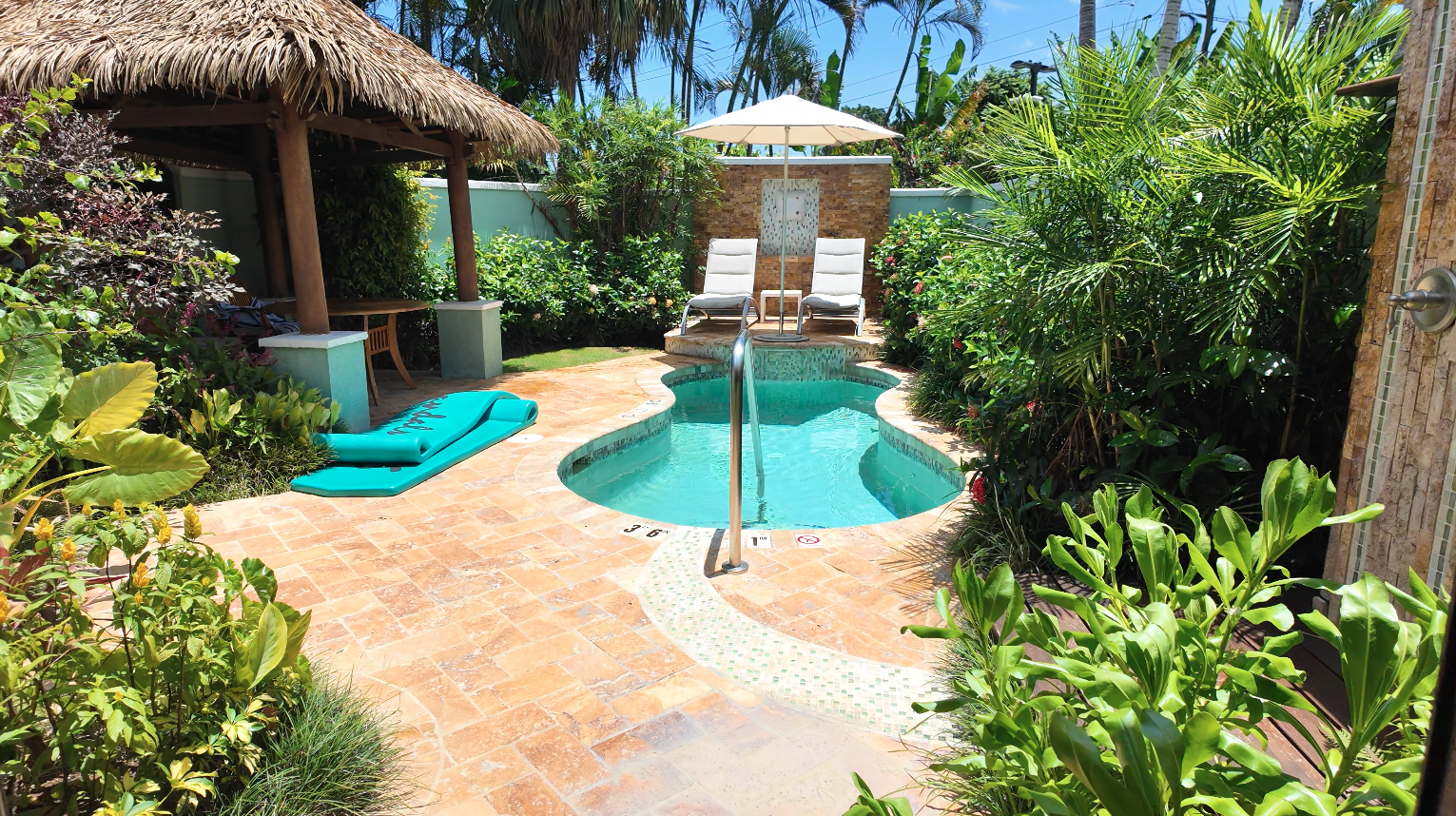If you want to feel like you can escape to your own little house after an afternoon on the beach, you may consider the RJ room, which is the code for the One Bedroom Builter Suite with a private pool sanctuary. I honestly could forget I was on a larger property here, as it feels like you have your own small backyard with a private plunge pool.